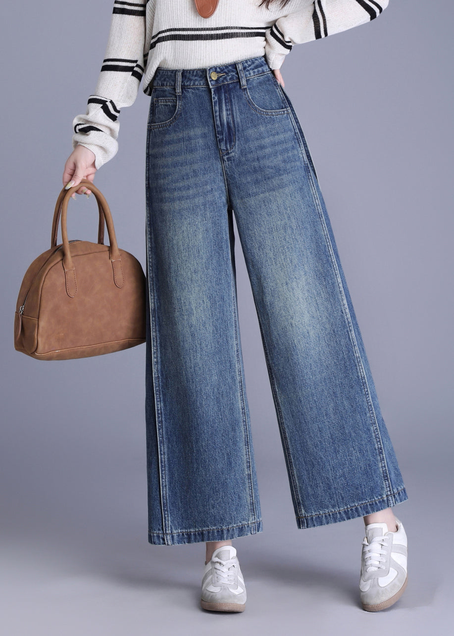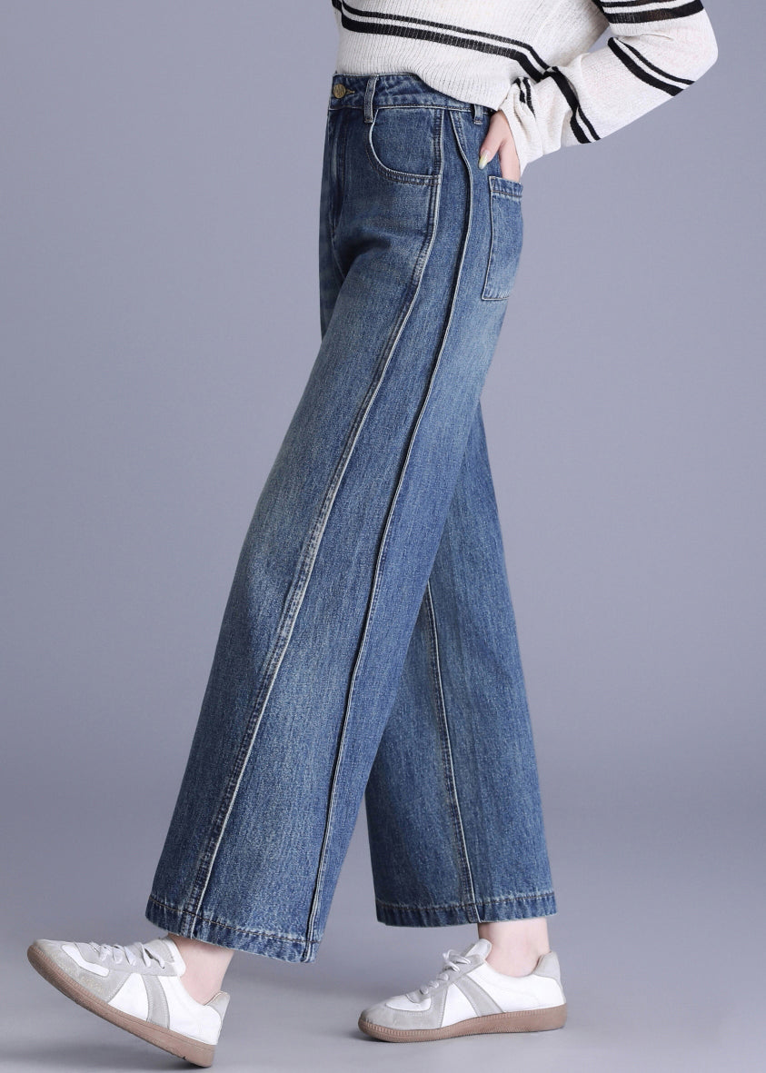 New Blue Pockets Patchwork Denim Crop Pants Spring