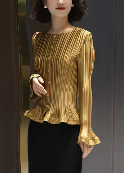 Slim Fit Grey Wrinkled Button Solid Cotton Blouses Fall