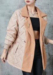 Khaki Patchwork Woolen Fine Cotton Filled Coats Double Breast Drawstrin Spring