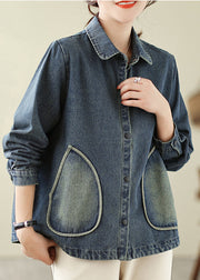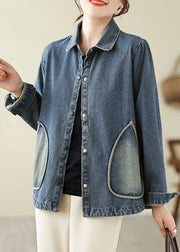 Retro Denim Blue Pockets Patchwork Coats Spring