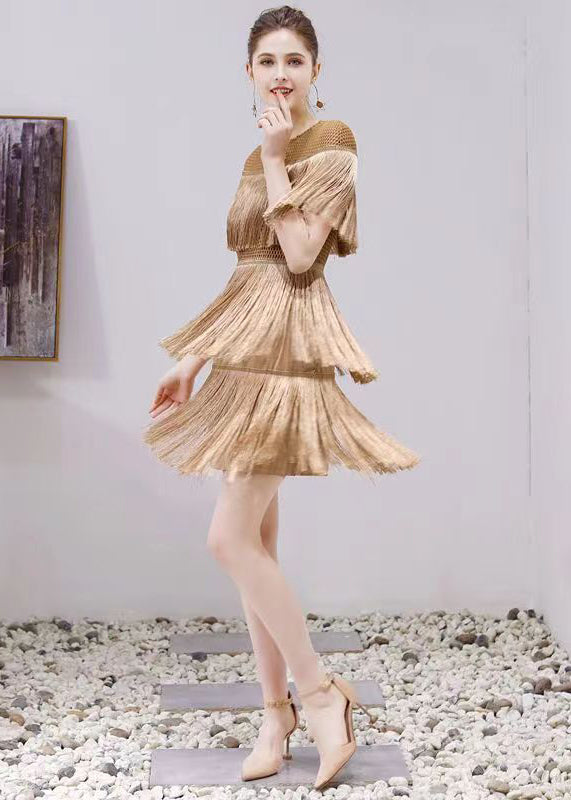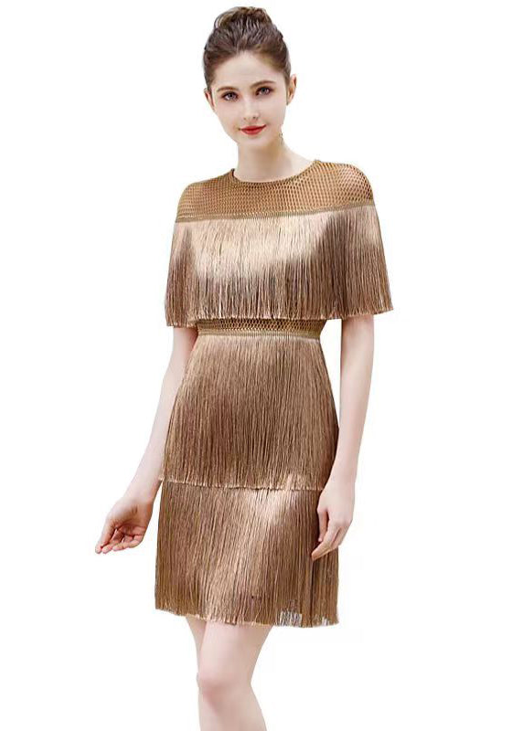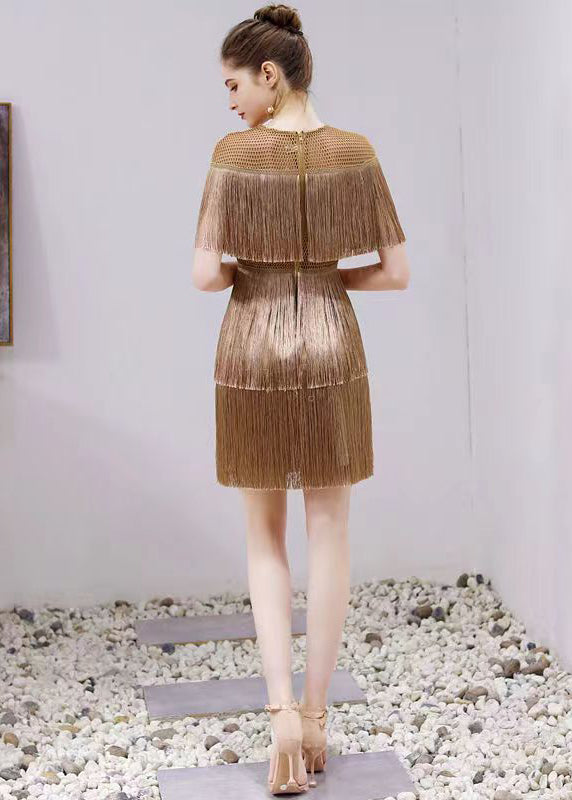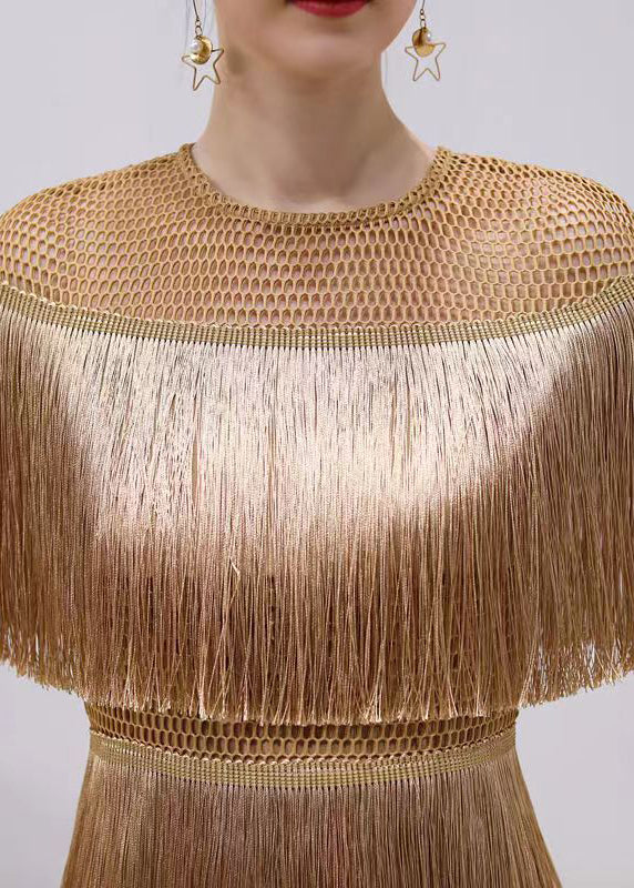 Boutique Elegant Gold Tasseled Hollow Out Party Dresses Summer
