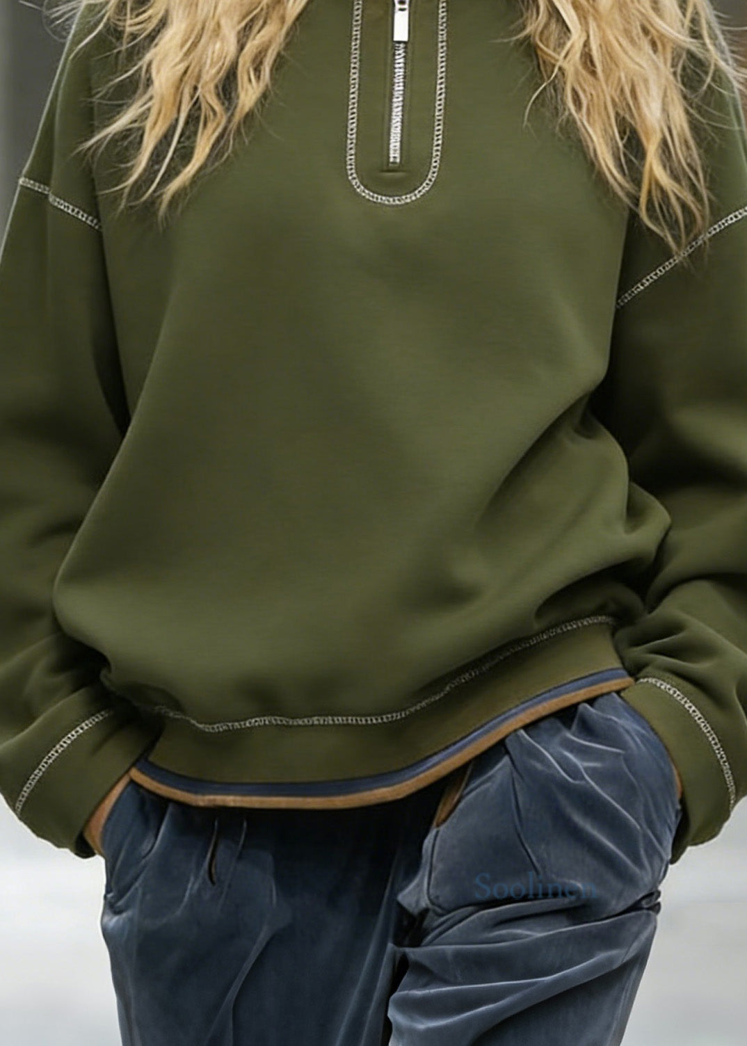 Italian Zip Up Patchwork Cotton Sweatshirts Top Spring