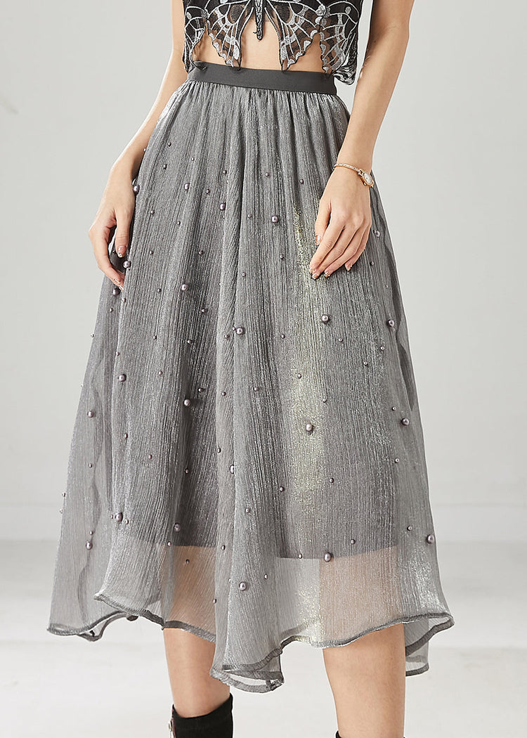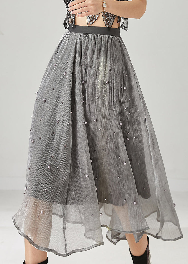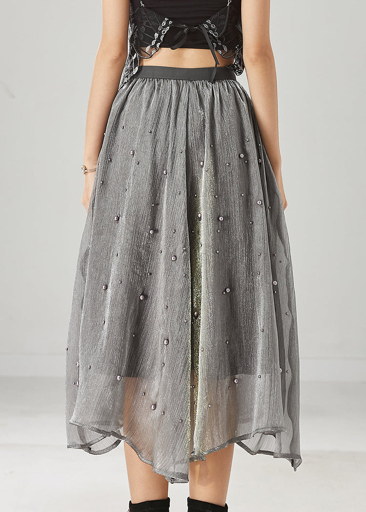 Classy Grey Nail Bead Tulle A Line Skirt Spring
