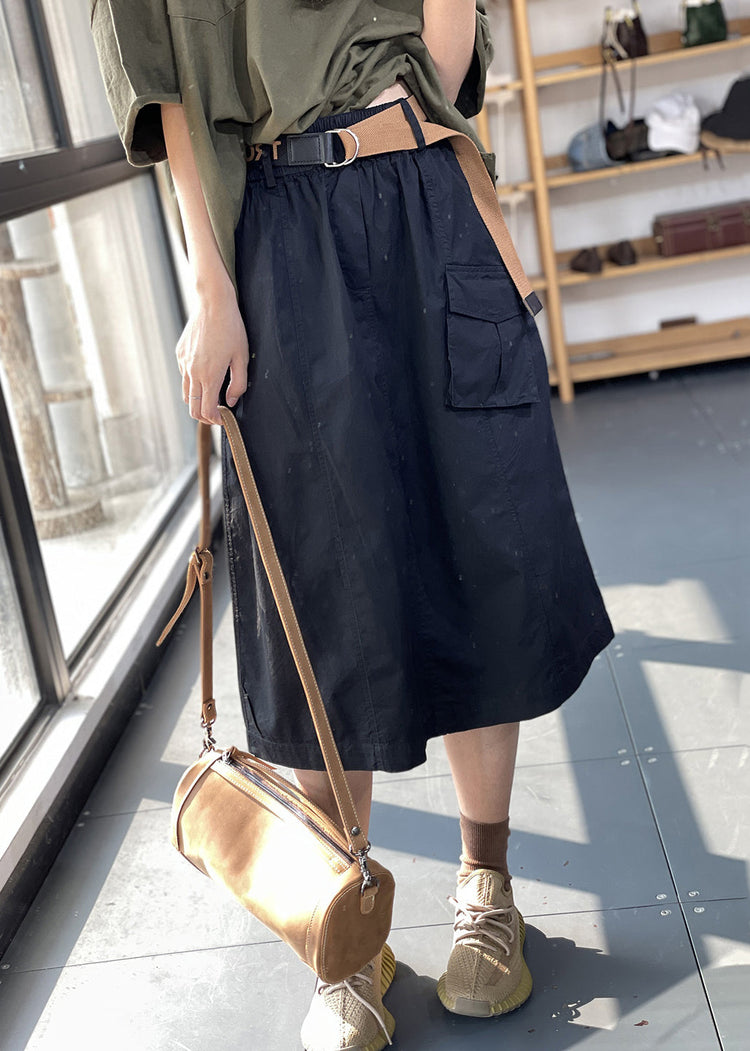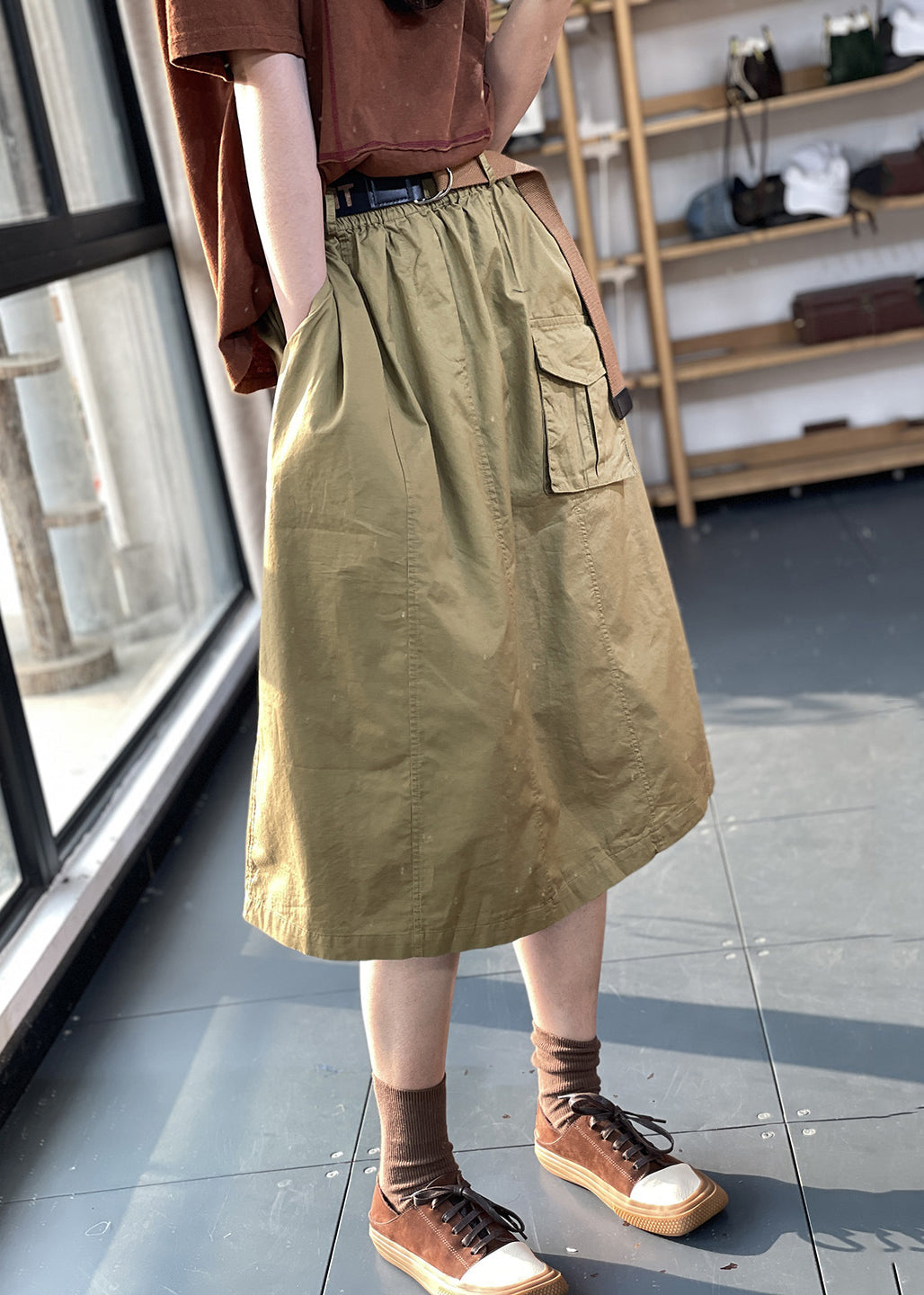 New Khaki Pockets Elastic Waist Cotton Skirt Summer