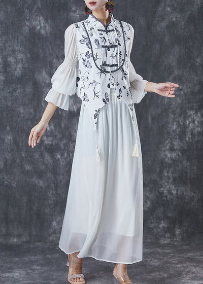 Fine White High Neck Draping Wear On Both Sides Silk Long Dresses Spring