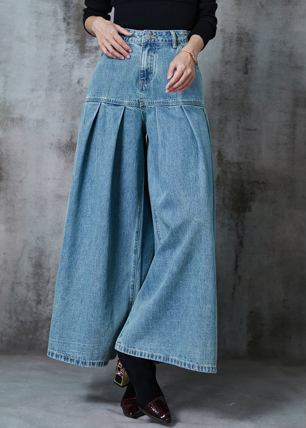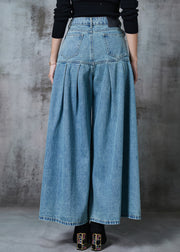Elegant Blue High Waist Patchwork Denim Wide Leg Pant Skirts Summer