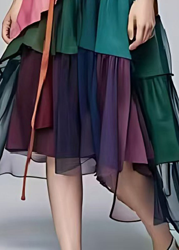 Chic Brown Drawstring Patchwork Cotton Long Dress Summer