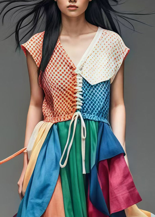 Peacock Blue Patchwork Cotton Dress Exra Large Hem Summer