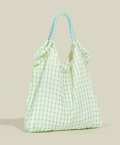 Art Green Plaid Large Capacity Nylon Shoulder Handbag