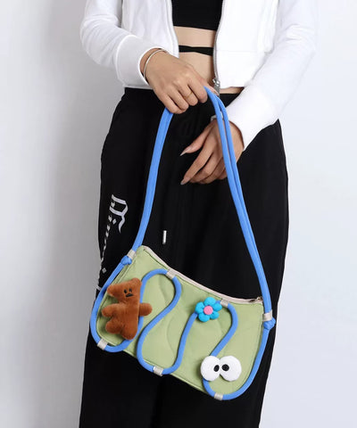 Style White Cat Asymmetrical Design Fuzzy Fur Fluffy Shoulder Bags