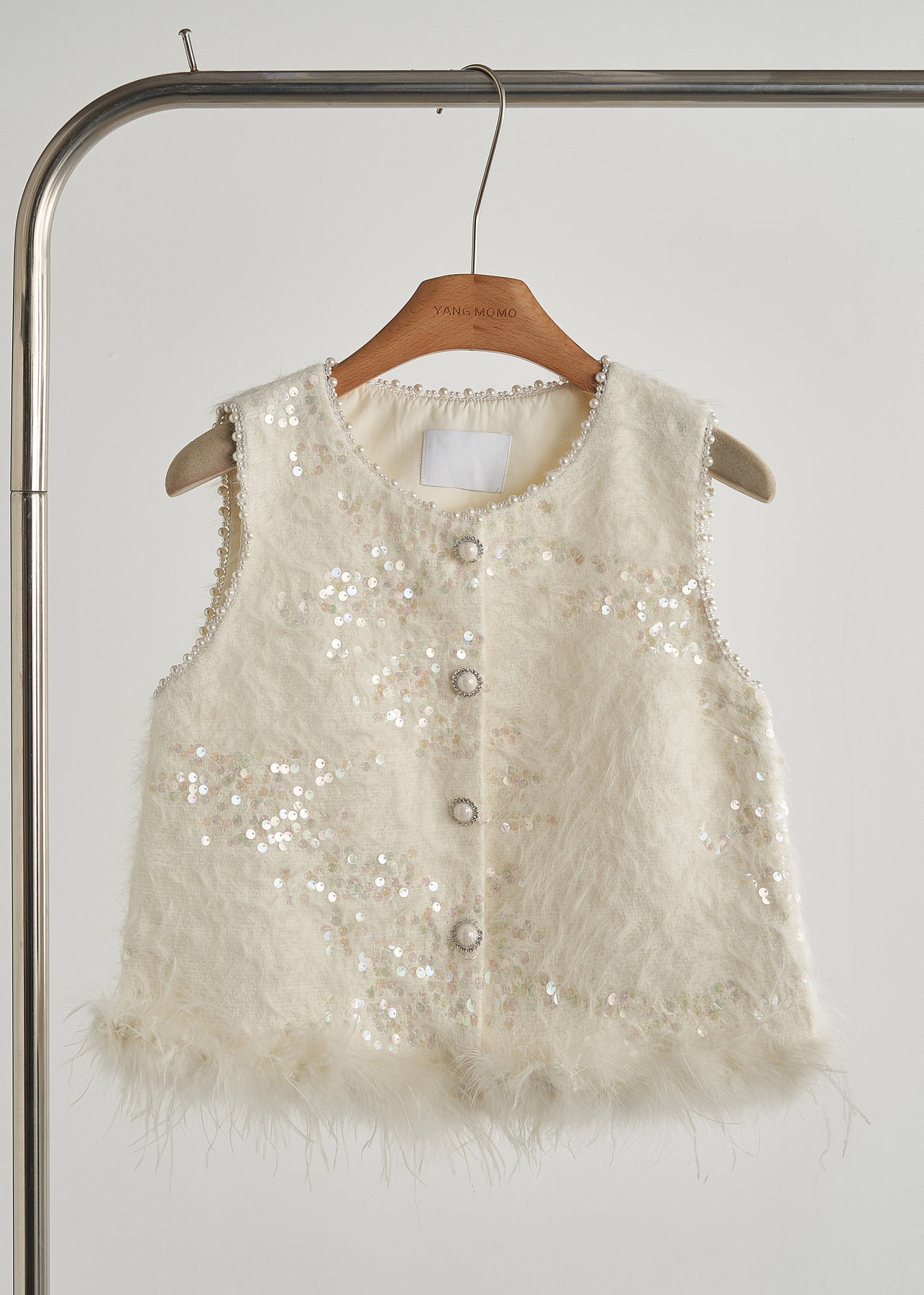 Boutique White Sequins Patchwork Feather Vests Fall