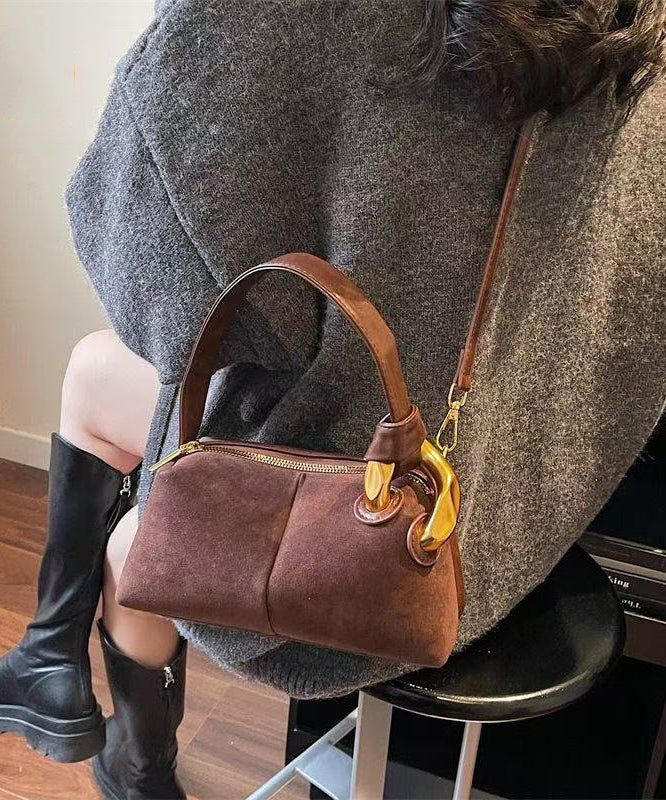 Boutique Camel Solid Durable Patchwork Fine Suede Tote Handbag