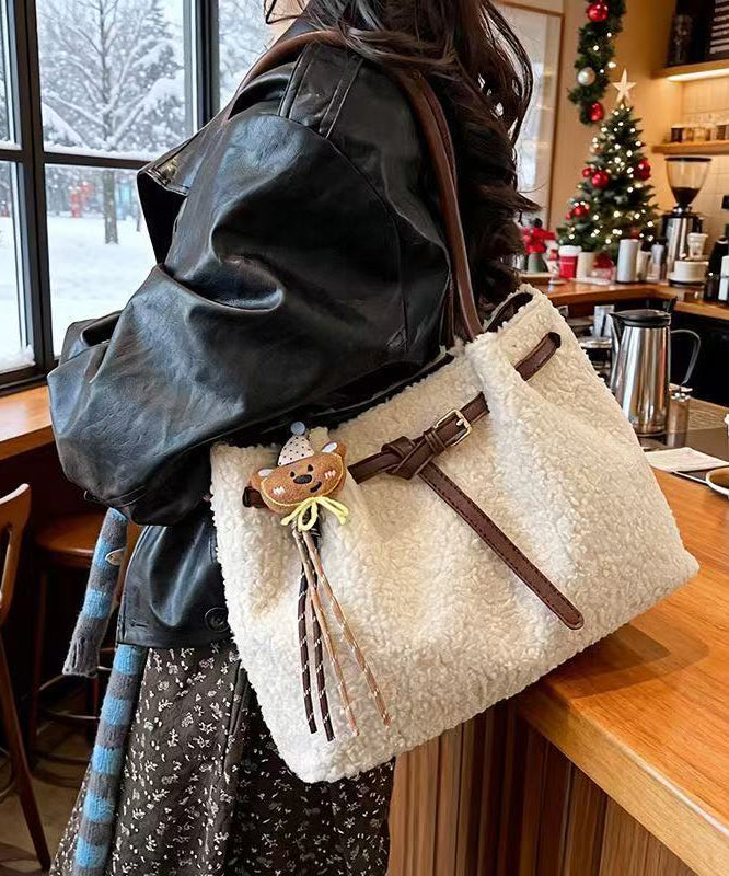 Handmade White Solid Durable Cute Pendant Wool Shoulder Bags