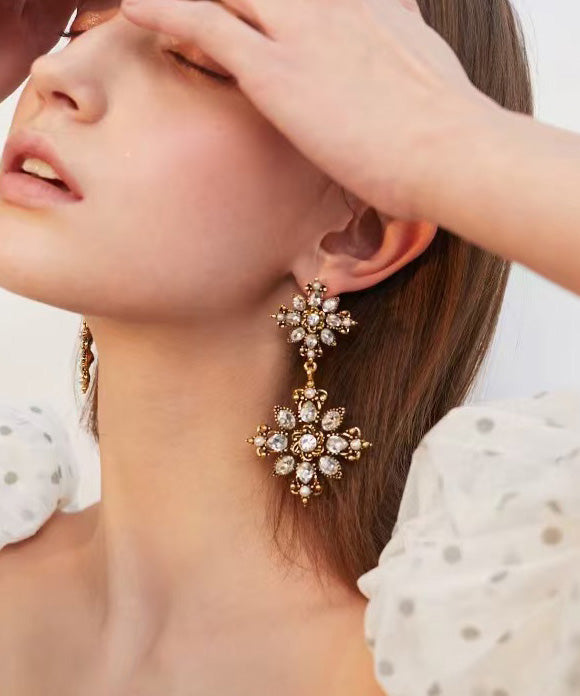 Korean Court Style Gold Floral Zircon Personalized Earrings