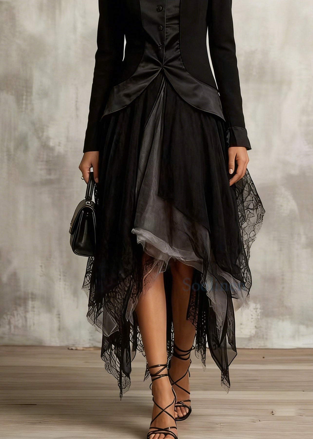Classy Black Colorblock Tulle Asymmetrical Sesign Skirt Summer