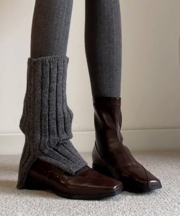 Classy Splicing Boots Brown Cowhide Leather Square Toe