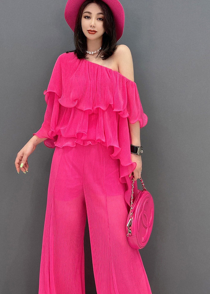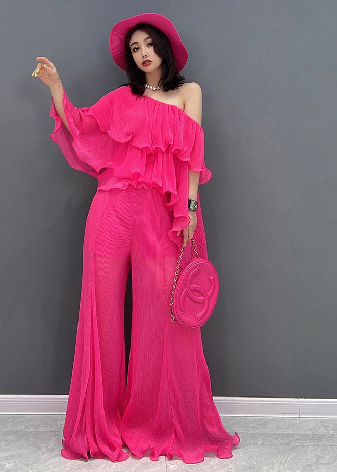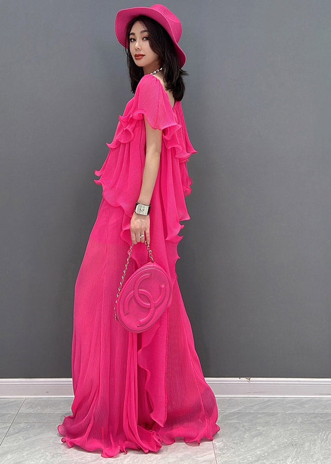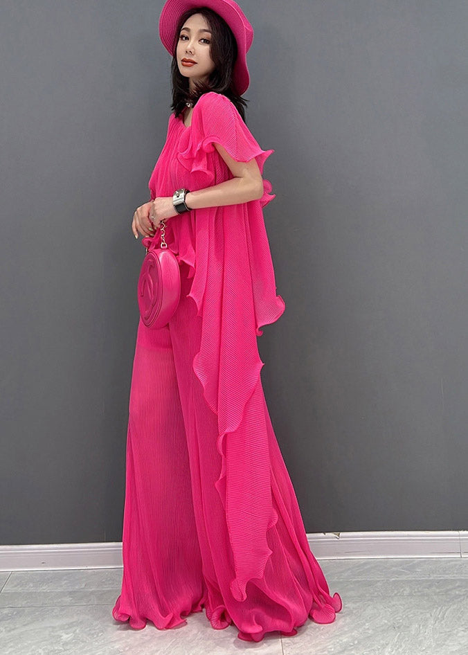 Vogue Chiffon O-Neck Top And Wide Leg Pants Two Pieces Set Summer