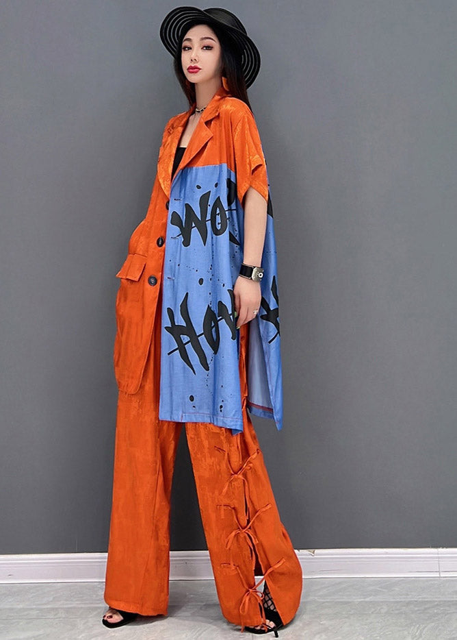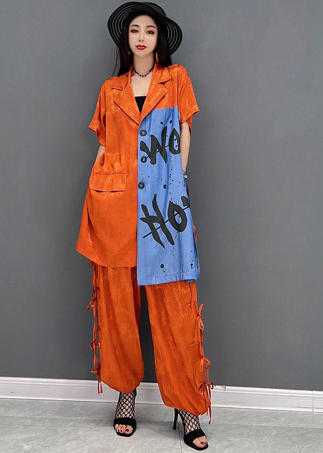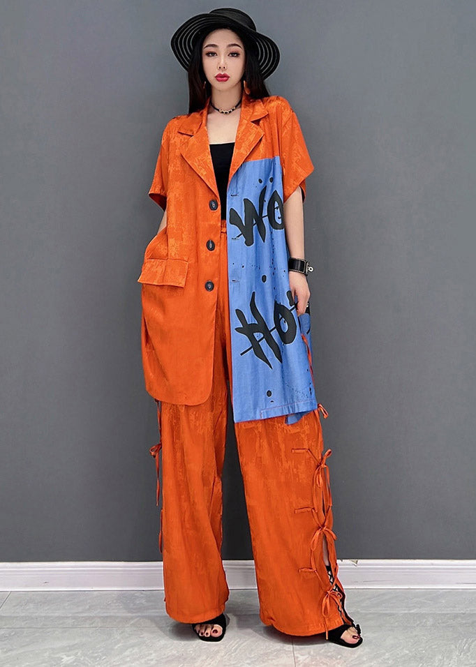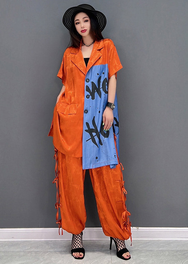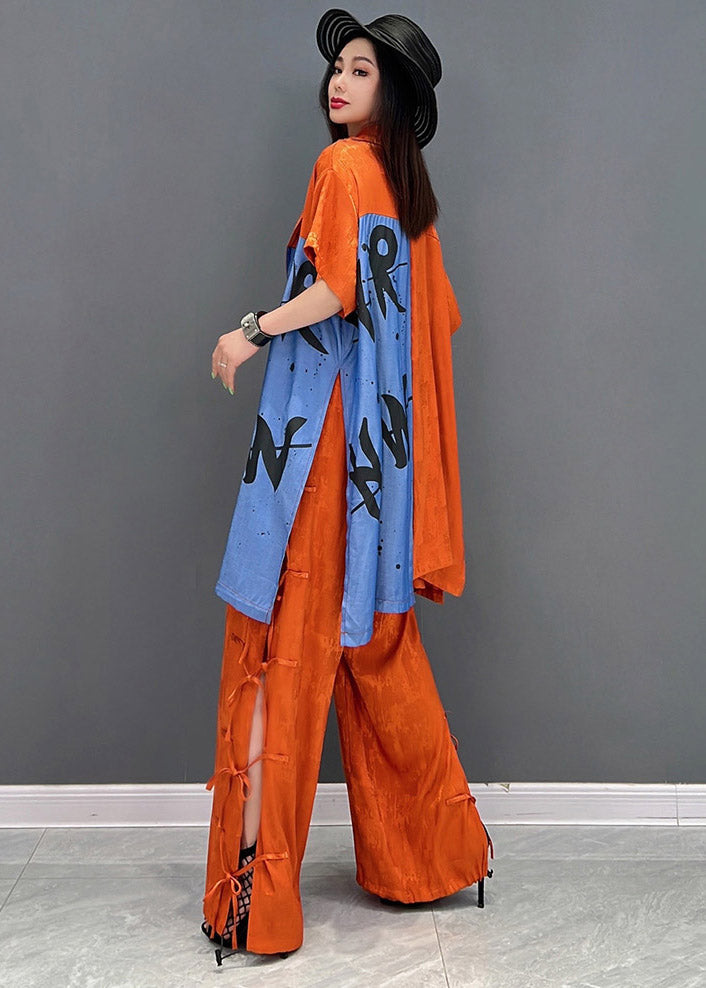 Vogue Red Peter Pan Collar Print Shirt And Pants Two Piece Set Summer