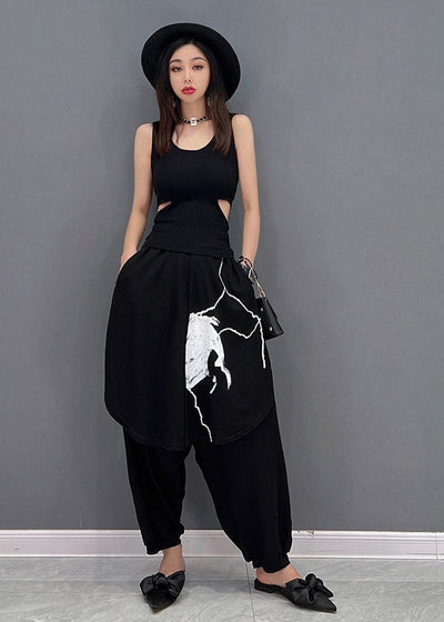 Vogue Black O-Neck Tank Top And Harem Pants Two Pieces Set Summer