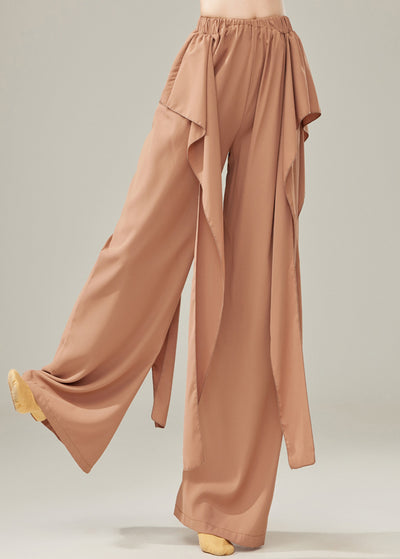 Loose Coffee Pockets Elastic Waist Cotton Wide Leg Pants Fall