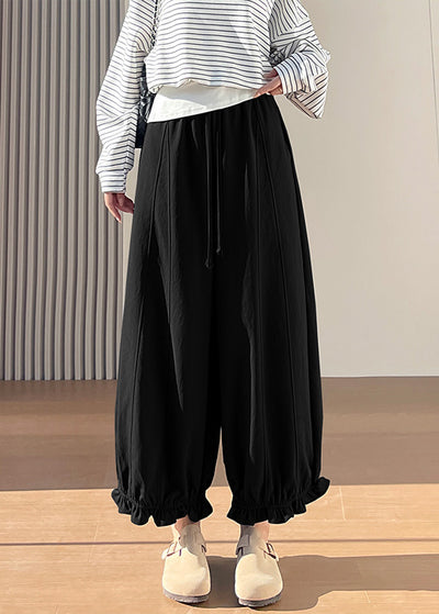Modern Black Plaid Elastic Waist Cotton Wide Leg Pants Summer
