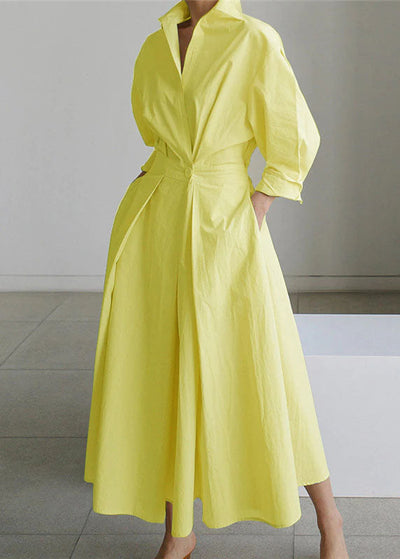 New Yellow Chiffon Dresses Plus Size Clothing Linen Maxi Dress Fine High Waist Batwing Sleeve Clothing