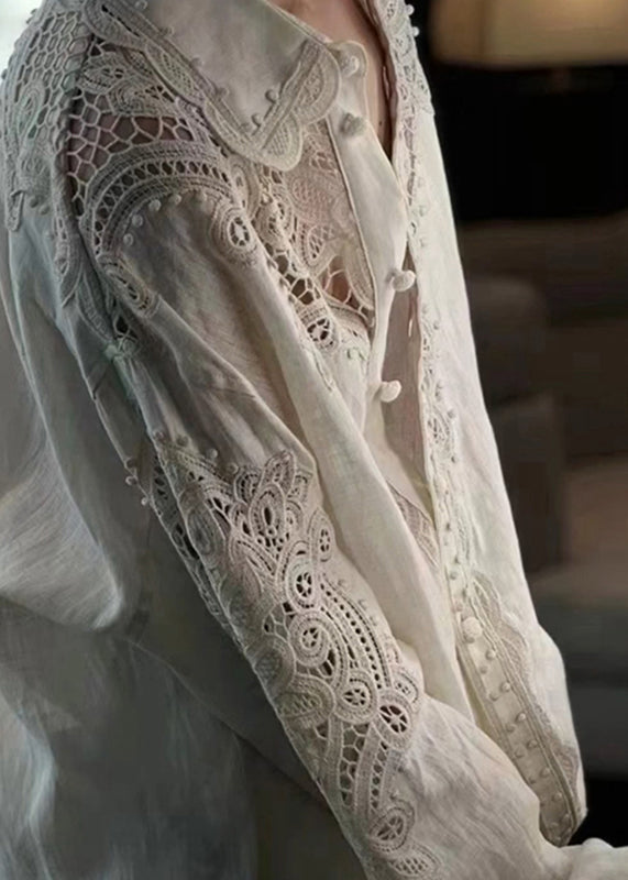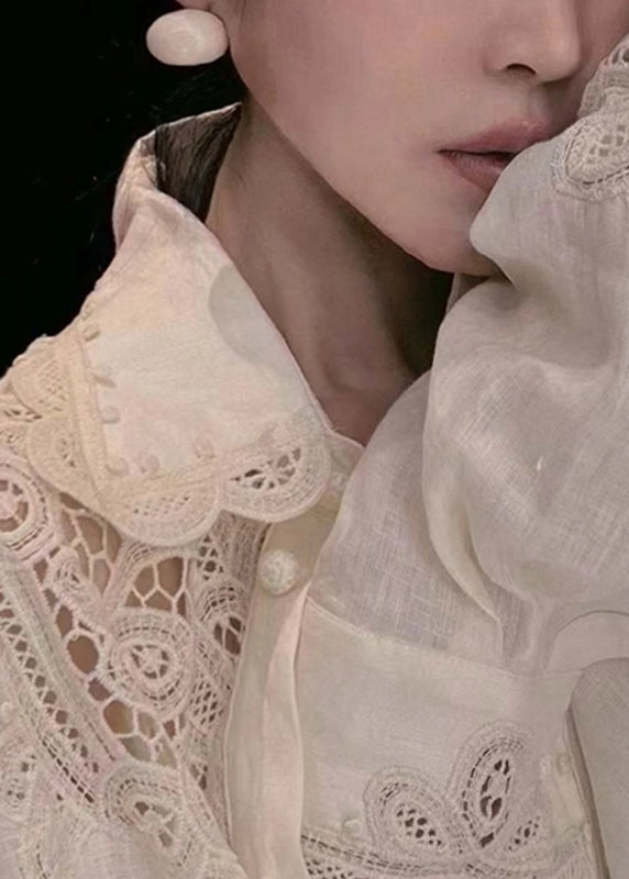 Cute White Peter Pan Collar Hollow Out Button Top Lantern Sleeve
