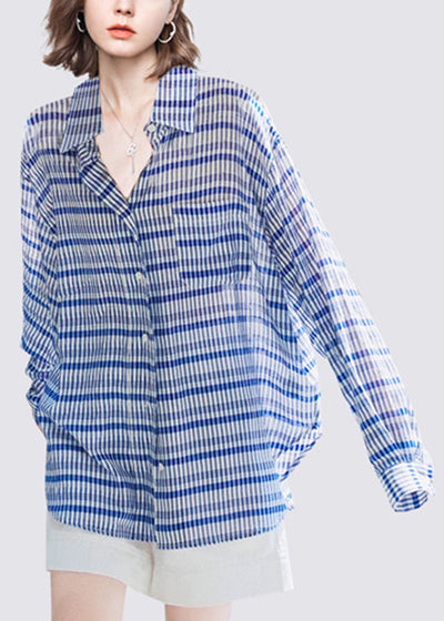 Vintage Denim Blue Peter Pan Collar Button Solid Shirt Fall