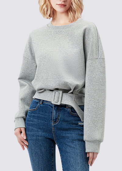 Plus Size Grey Patchwork Sashes Sweatshirt Lantern Sleeve