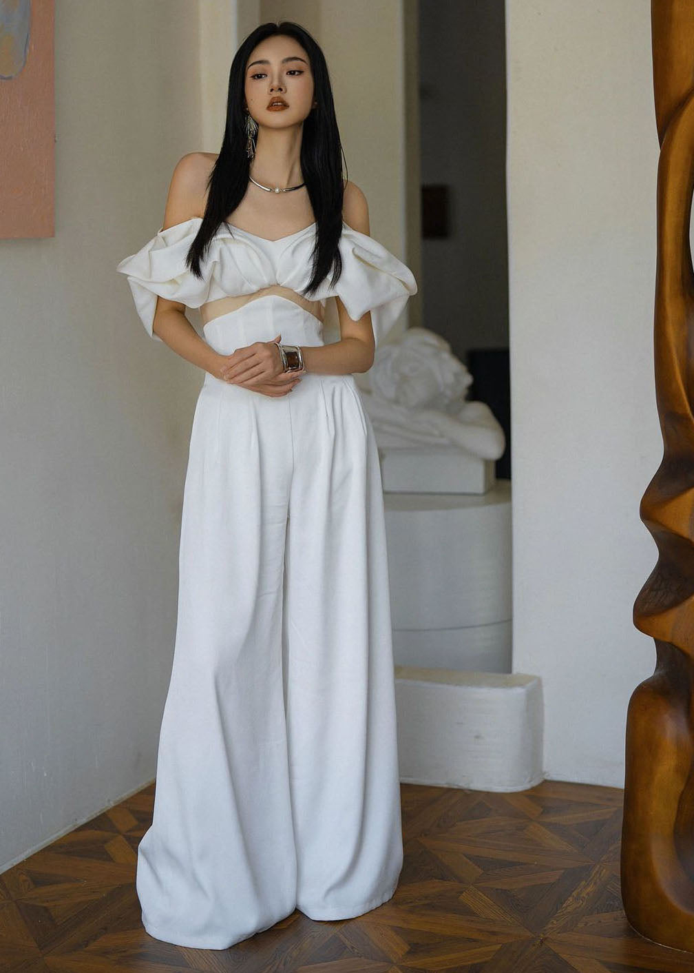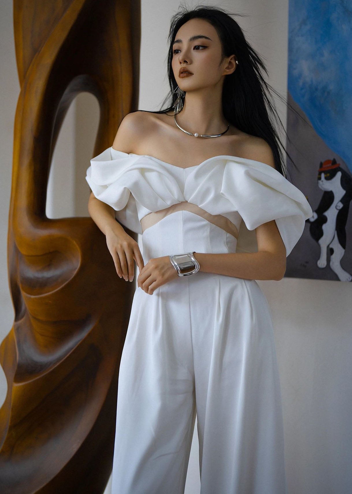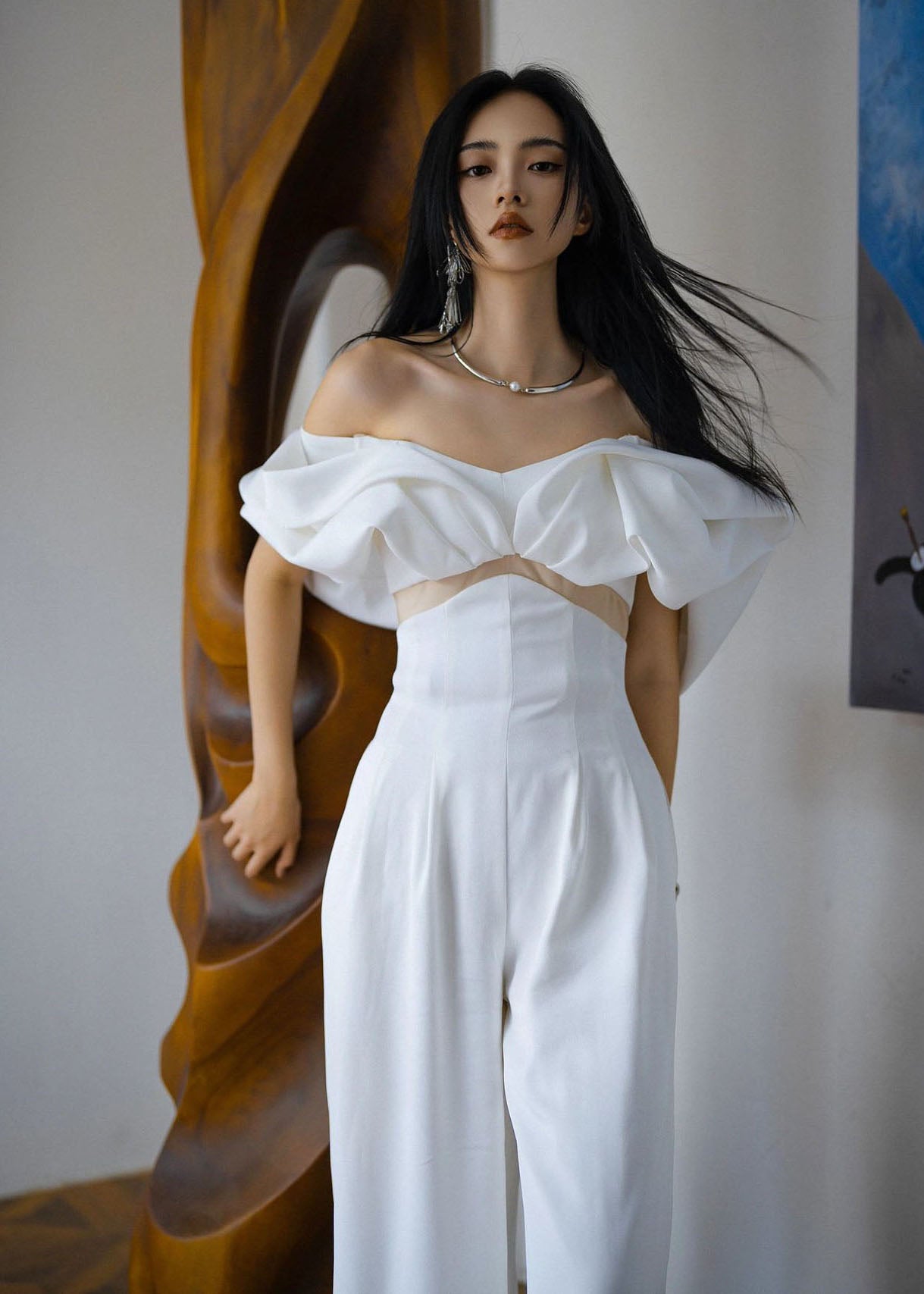Organic White Slash Neck Tulle Patchwork Overalls Jumpsuit Summer