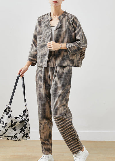 Vintage Grey Striped Linen Two Pieces Set Spring