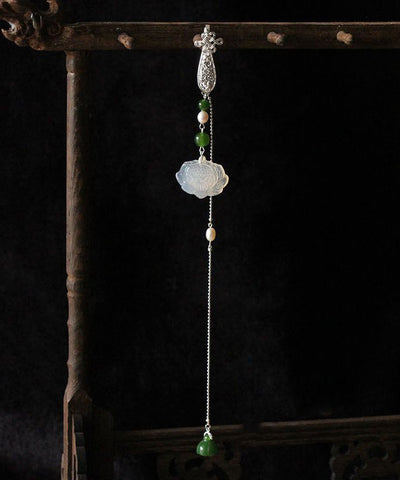 Retro Silk Sterling Silver Jade Pearl Lotus Brooches