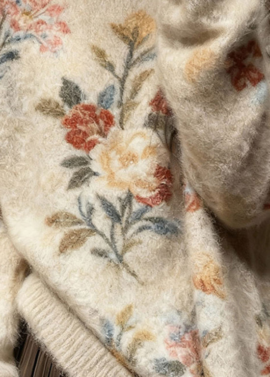 Original Design O Neck Thick Floral Knit Pullover Winter