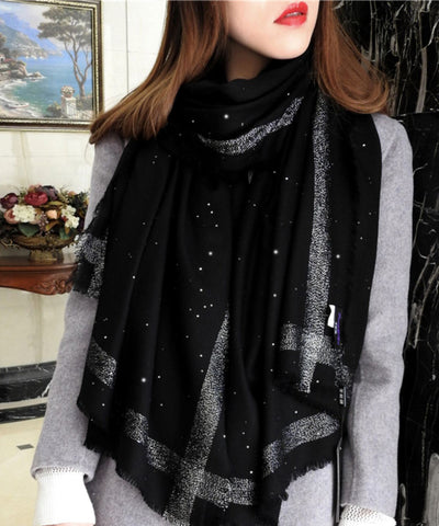 Italian Versatile Tasseled Sequins Woolen Scarf