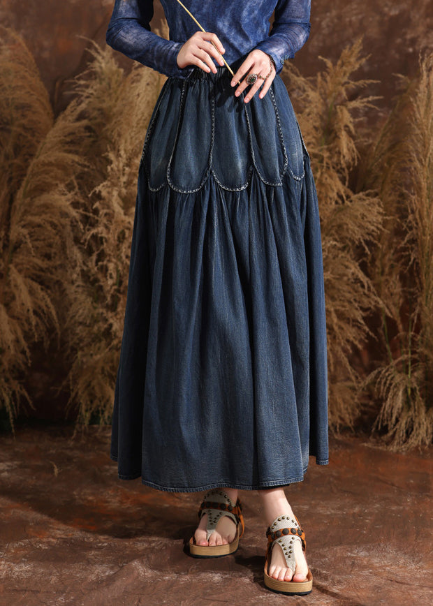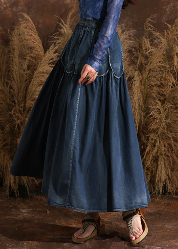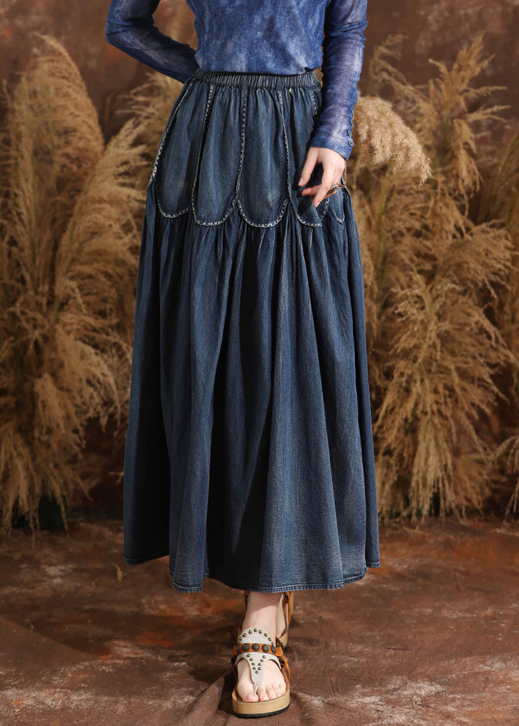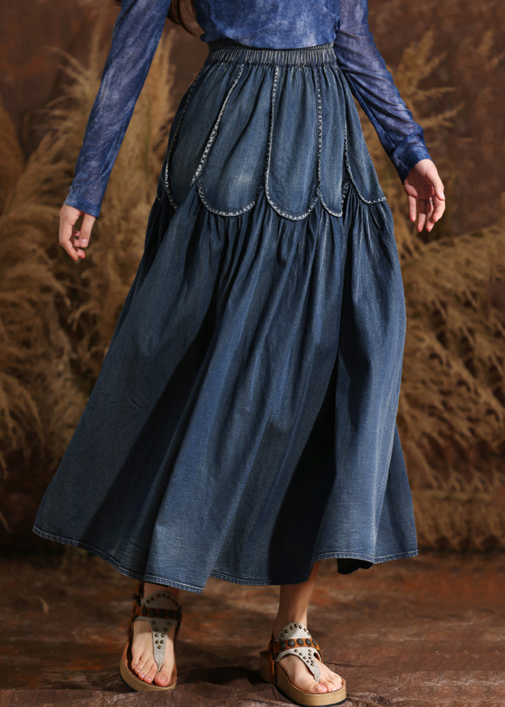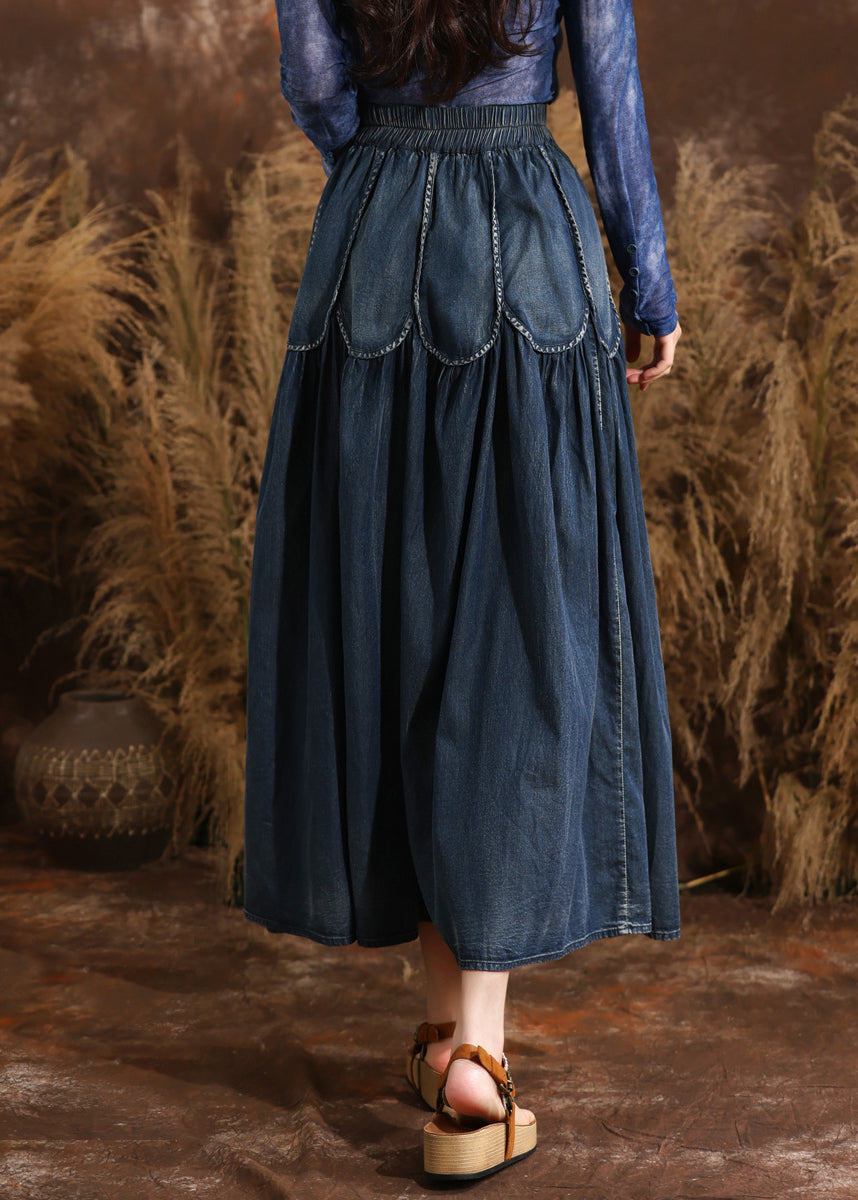French Navy Patchwork Elastic Waist A Line Denim Skirts Summer
