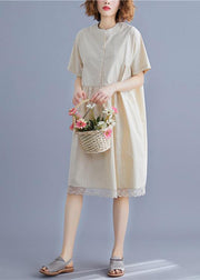 Women nude Cotton quilting dresses o neck patchwork lace summer Dresses - SooLinen