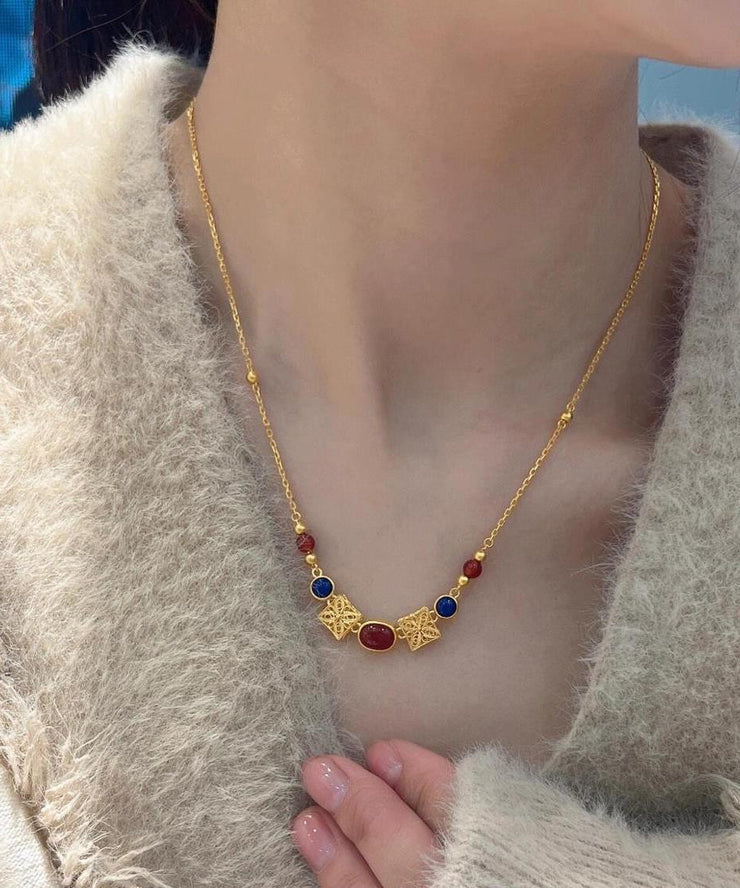 Beautiful Gold Sterling Silver Overgild Zircon Floral Pendant Necklace