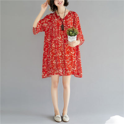 Elegant red chiffon dress o neck long sleeve party dress print baggy dresses chiffon dress
