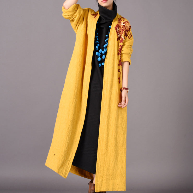 Fine yellow Coats casual embroidery baggy Winter coat boutique side open Coats