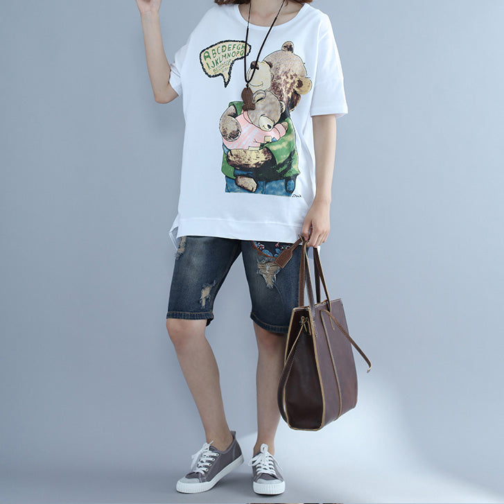 Natural white print cotton clothes Omychic Photography Batwing Sleeve o neck top